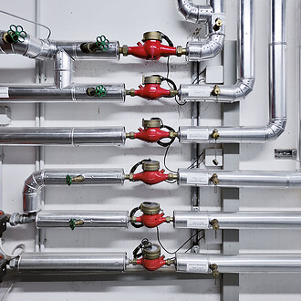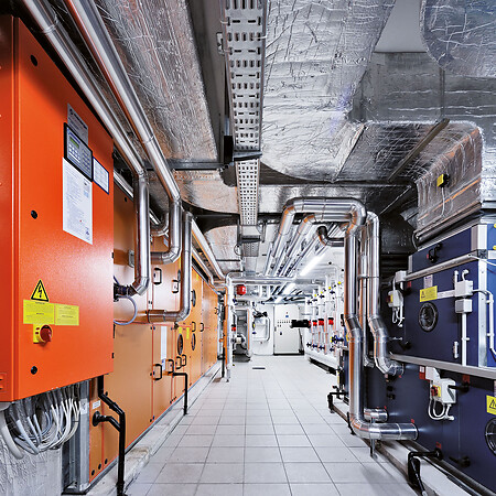 Arbeiten zum Bau des neuen Sitzes des Braunviehzuchtverbandes „Haus der Tierzucht“. Realisierung der thermohydraulischen Anlagen.