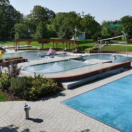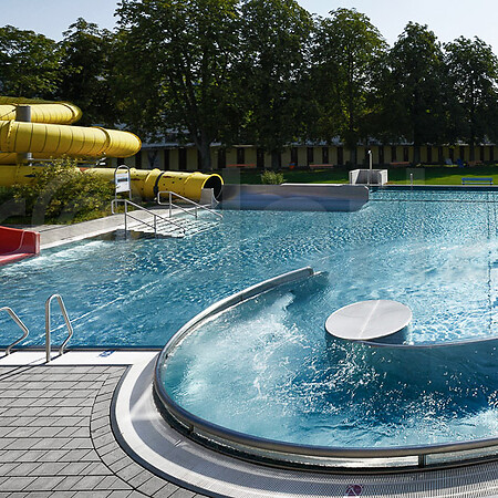 Attraktionen: Bodensprudel, Massagedüsen, Strömungskanal, Breitrutsche, Röhrenrutsche, Elefant, Clown, Aquadom, Water Tunnel, Sprudelliegen, Team Spray, Direction Water Jet