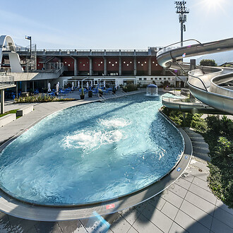 Technologie: MehrschichtfilterAnzahl der Becken: 1Wasserfläche: 877 m²Umwälzleistung: 636 m³/hAttraktionen: Strömungskanal, Massagedüsen, Bodensprudler