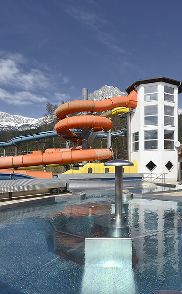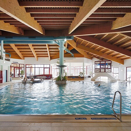 Attraktionen: Kinderrutsche, Turborutsche, Baumhaus, Wasserräder, Wasserkanonen, Kippfass, Loopkanonen, Spritzfrosch, Baumstamm, Schwallrohr, Mast mit Korb, Kippeimer, Standfass