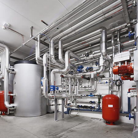 New Production unit Dr. SchärImplementation of heating, sanitation, ventilation, fire protection and sprinkler systems, Boiler renovation.
