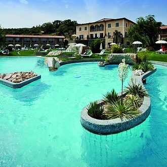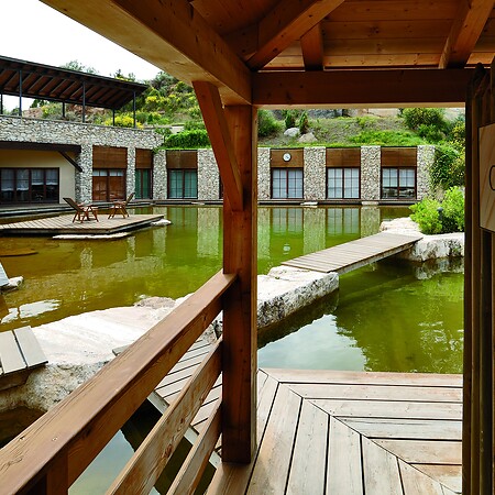 Technology: Sand filters, active charcoal filter Number of pools: 5 Water surface: 950 m² Circulation rate: 750 m³/h Attractions: Bubble lounger, bubble seats, massage jets, waterfall, floor bubbles, flow channel