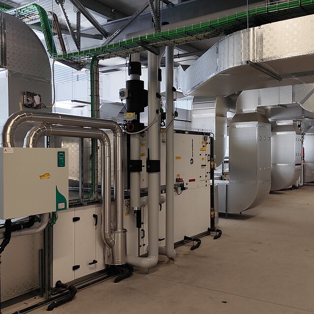 I nostri refrigeratori garantiscono invece il raffreddamento durante l'estate. Inoltre, abbiamo posizionato idranti a muro con raccordi antincendio nelle aule, mentre nel resto dell'edificio sono stati installati estintori per un utilizzo immediato.