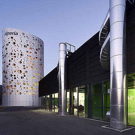 La nuova torre, alta 43 metri, costruita da Atzwanger AG assieme a società partner, è in grado di immagazzinare l’energia ricavata dal nuovo termovalorizzatore di Bolzano Sud e ha la funzione di compensare i picchi di prelievo di calore del sistema di teleriscaldamento. Per migliorare l’impatto visivo, la torre possiede una facciata costellata con fori di diverse dimensioni retroilluminati con centinaia di LED che alla sera, danno vita ad uno spettacolo di colori